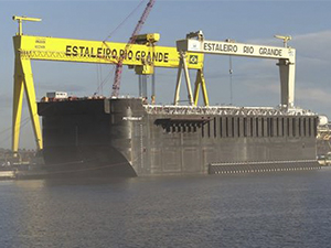 A Petrobras iniciou neste sábado (05), a retirada do casco da plataforma P-66 do Estaleiro Rio Grande (ERG-1), no Rio Grande do Sul. A operação exigiu o desassoreamento no entorno da porta-batel para abertura da comporta, que foi realizado pela LF Ambiental.